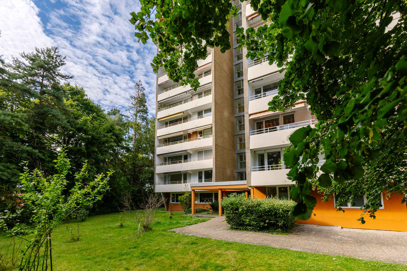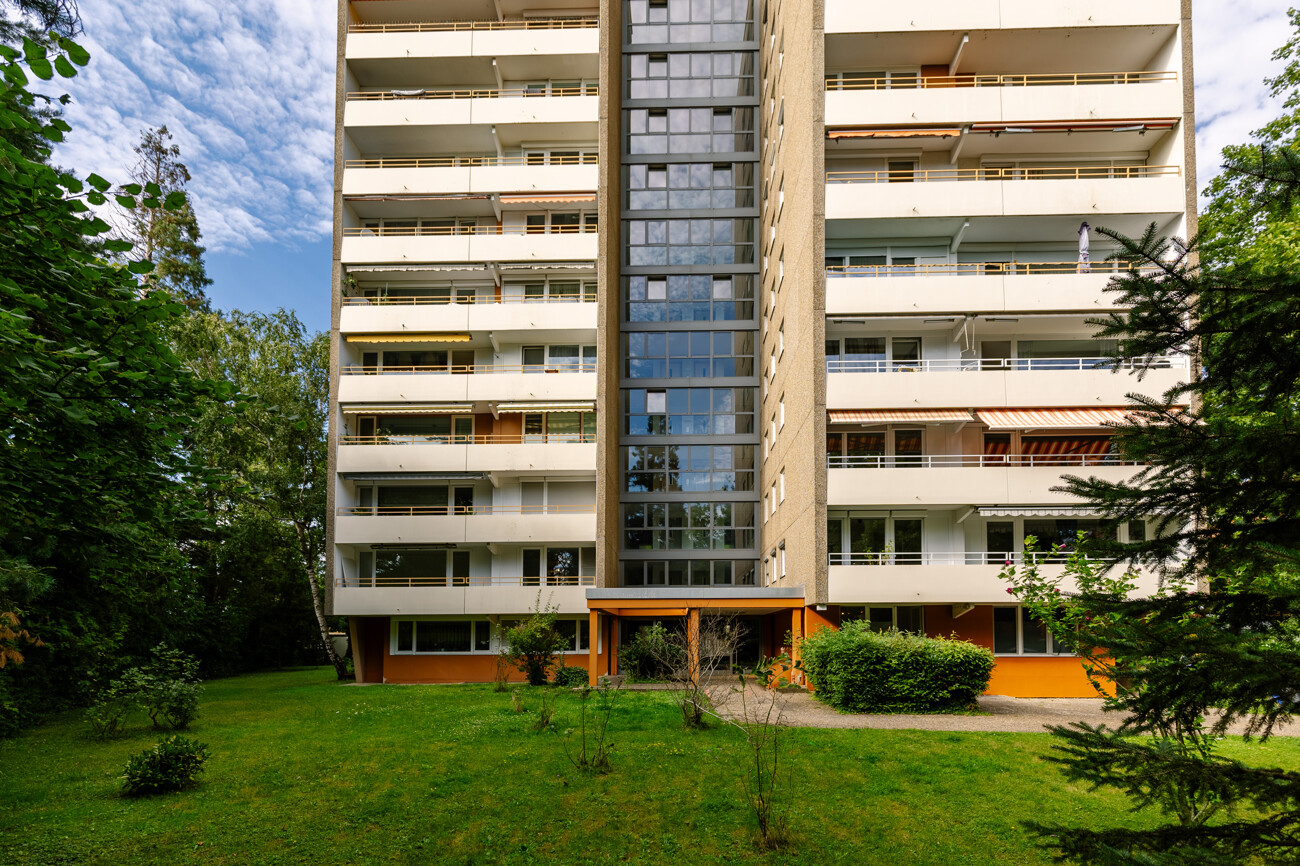 Die Wohnung ist ausgestattet mit zwei Balkonen mit Süd- und Westausrichtung, modernisierte Fenster mit guter Wärmedämmung, erneuerte Bodenbeläge sowie ein modernisiertes Bad mit Badewanne und separatem WC. Ein Kellerabteil, zwei Personenaufzüge bis zur Wohnetage sowie eine Stellplatzberechtigung runden das Angebot ab. Technisch wird die Immobilie über eine Öl-Zentralheizung aus dem Jahr 1984 versorgt. Der Energieverbrauchsausweis weist einen Wert von 133,88 kWh/(m²a) aus und entspricht der Energieeffizienzklasse E. Das monatliche Hausgeld beträgt 385 €. Das Mehrfamilienhaus befindet sich in gepflegtem Zustand, die Eigentümergemeinschaft ist stabil und werthaltig.