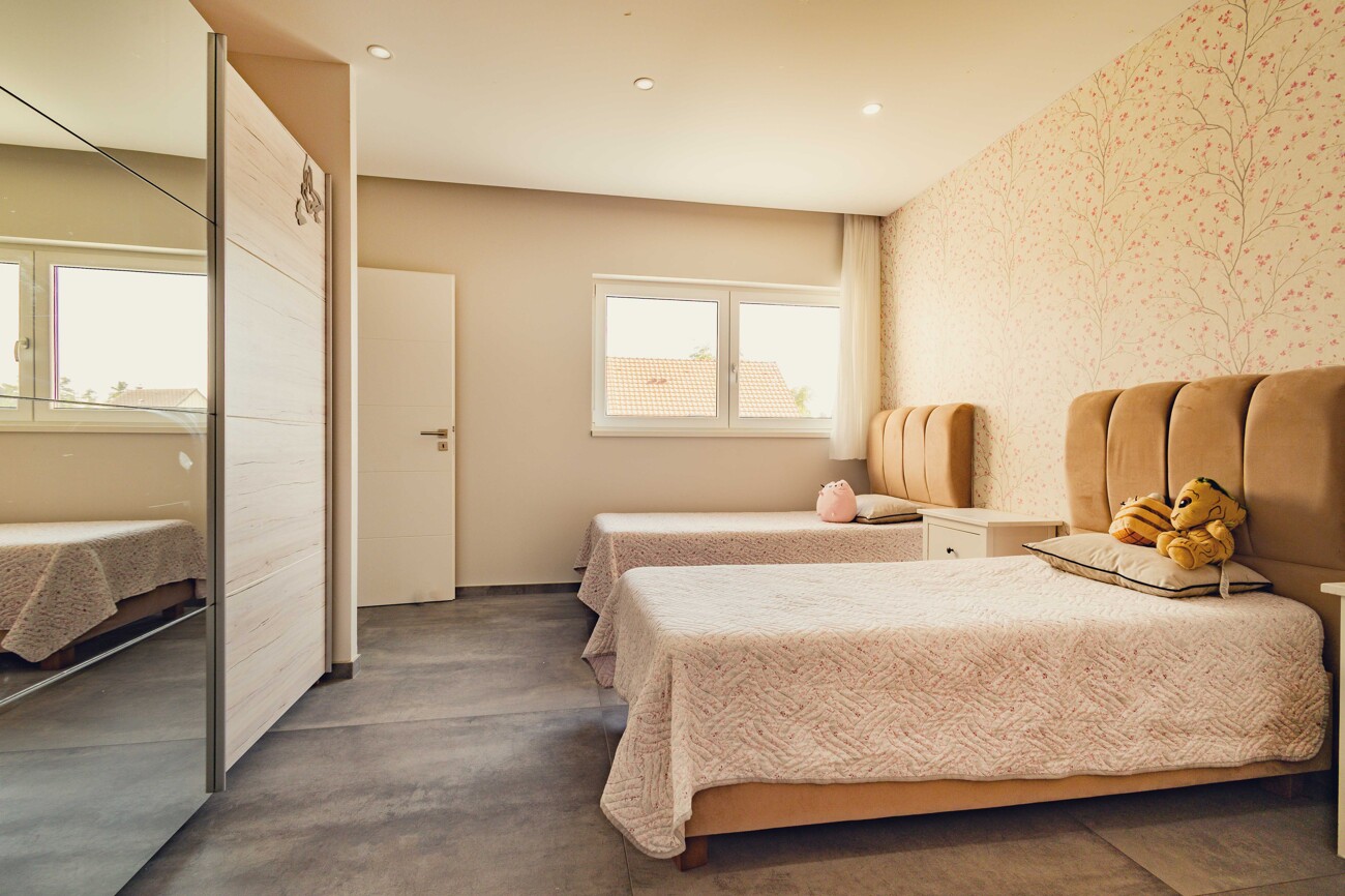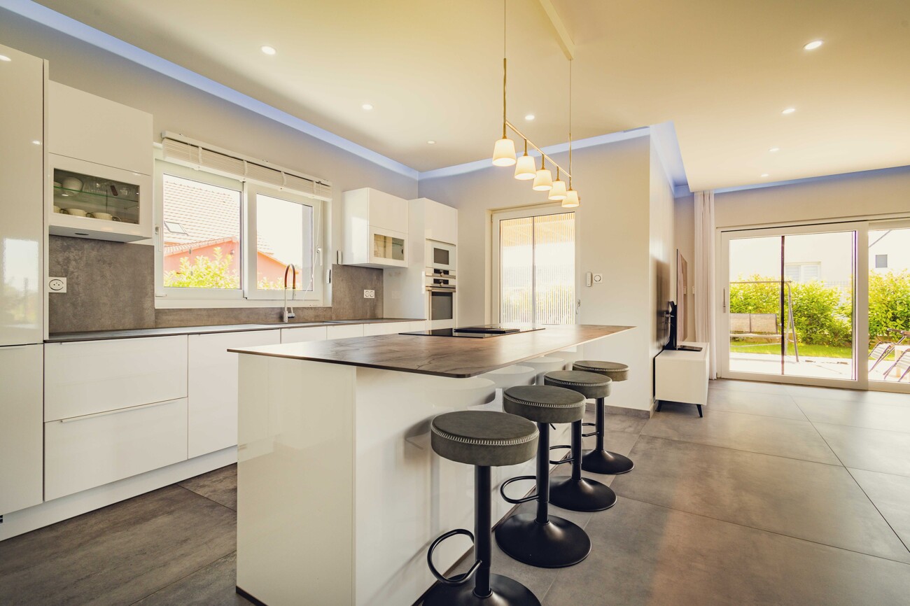 Das moderne Haus in Obersaasheim im französischen Elsass besticht durch seine hochwertige Ausführung, moderne Haustechnik und ein durchdachtes Raumkonzept. Es eignet sich ideal für Familien und Paare, die Wert auf ein stilvolles und nachhaltiges Zuhause legen. Hochwertige Materialien treffen auf eine minimalistische Architektursprache und intelligente Technik – für ein Wohnerlebnis auf höchstem Niveau.