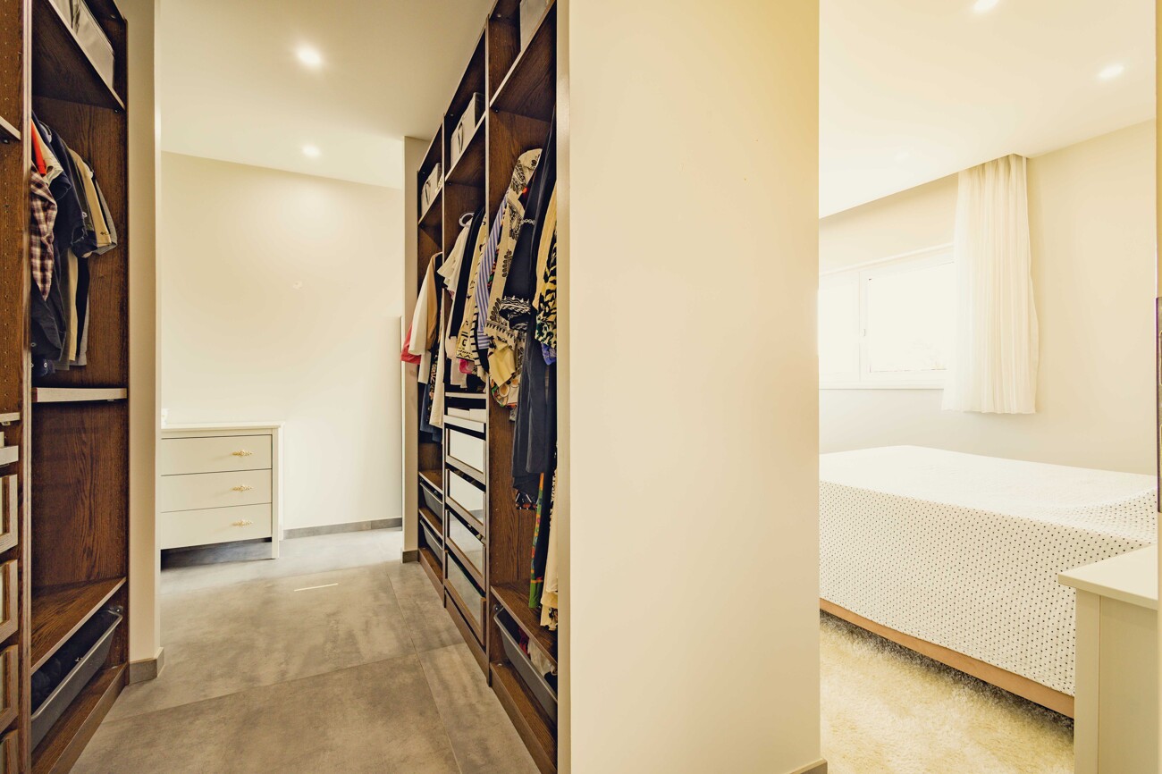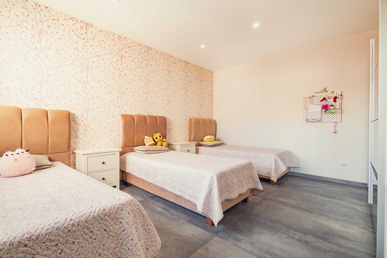 Mit insgesamt vier geräumigen Schlafzimmern bietet das Haus ausreichend Platz für Familienmitglieder oder Gäste. Das Elternschlafzimmer überzeugt durch ein besonderes Extra: ein begehbarer Kleiderschrank mit integrierter Dusche sorgt für zusätzliche Privatsphäre und ein Hauch von Luxus. Die beiden modernen Bäder sind mit Regendusche, Doppelwaschbecken und beleuchteten Spiegeln ausgestattet und laden zum Entspannen ein. Ein zusätzliches Gäste-WC ergänzt das Raumangebot sinnvoll.