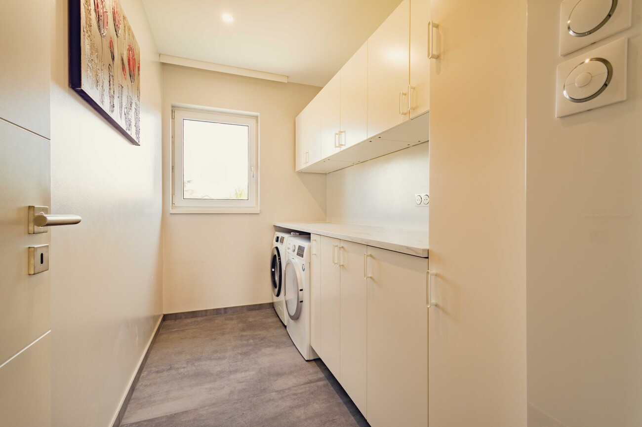 Auch funktional lässt das Haus keine Wünsche offen: Ein separater Hauswirtschaftsraum schafft praktischen Stauraum, während die Garage mit direktem Zugang ins Haus für Komfort im Alltag sorgt – gerade bei schlechtem Wetter ein klarer Vorteil. Elektrische Rollläden bieten zusätzlichen Schutz und erhöhen den Wohnkomfort.