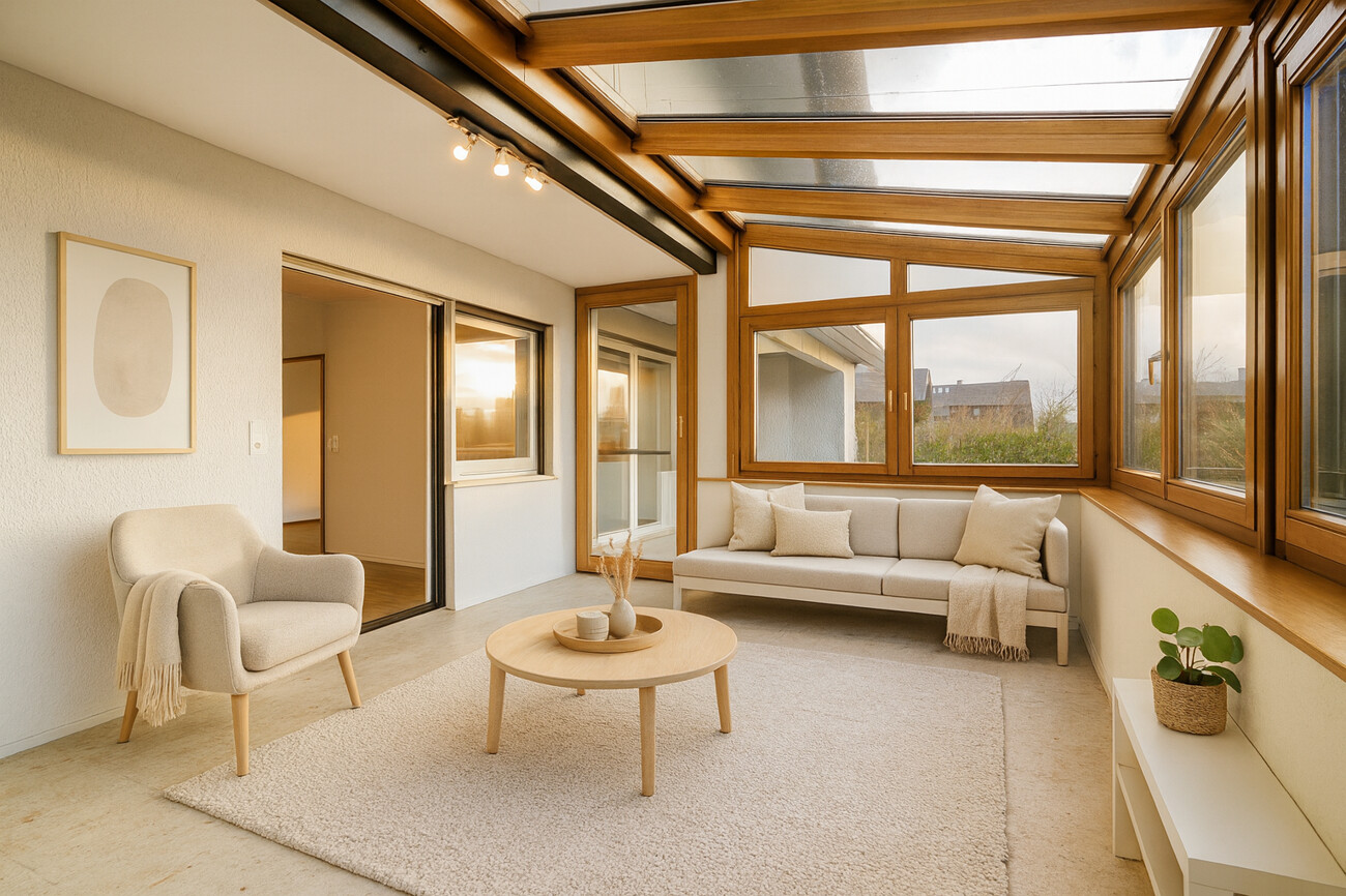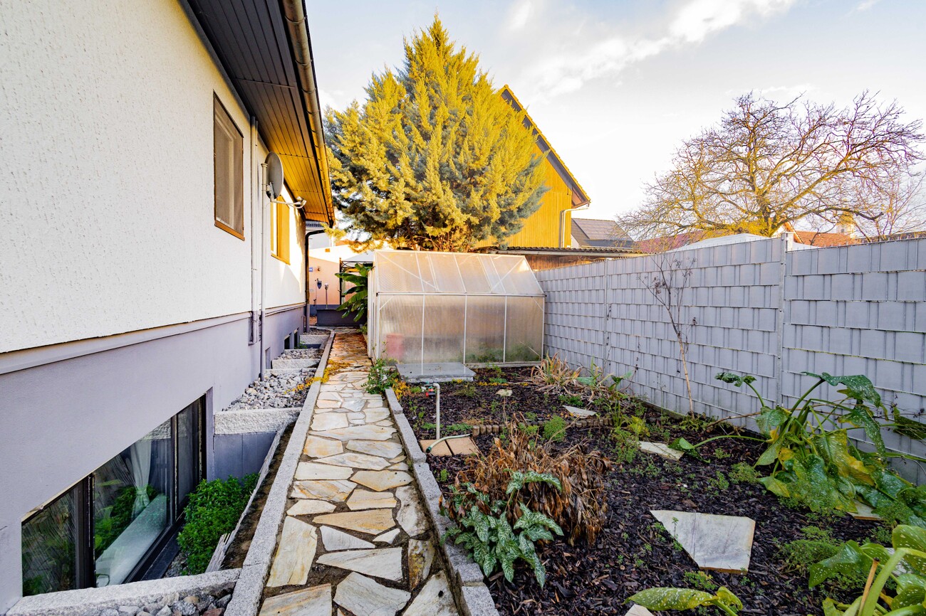 Das Elternschlafzimmer mit 16,27 m² sowie zwei weitere Zimmer mit 16,46 m² und 9,48 m² bieten flexible Nutzungsmöglichkeiten für Kinder, ein Homeoffice oder einen Hobbyraum. Ergänzt wird das Raumangebot durch den ganzjährig nutzbaren Wintergarten.