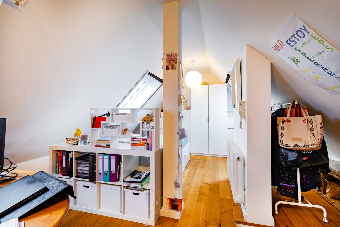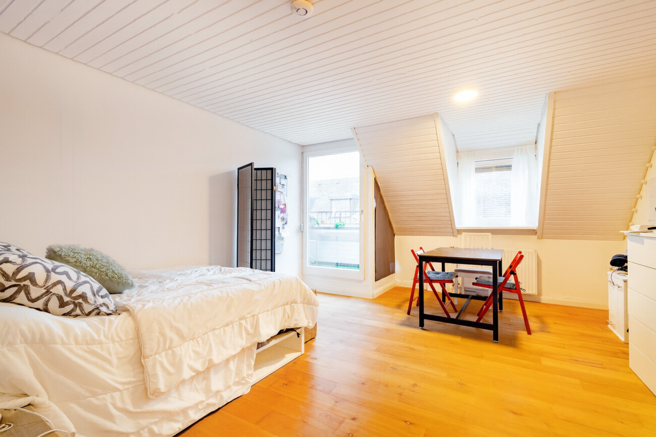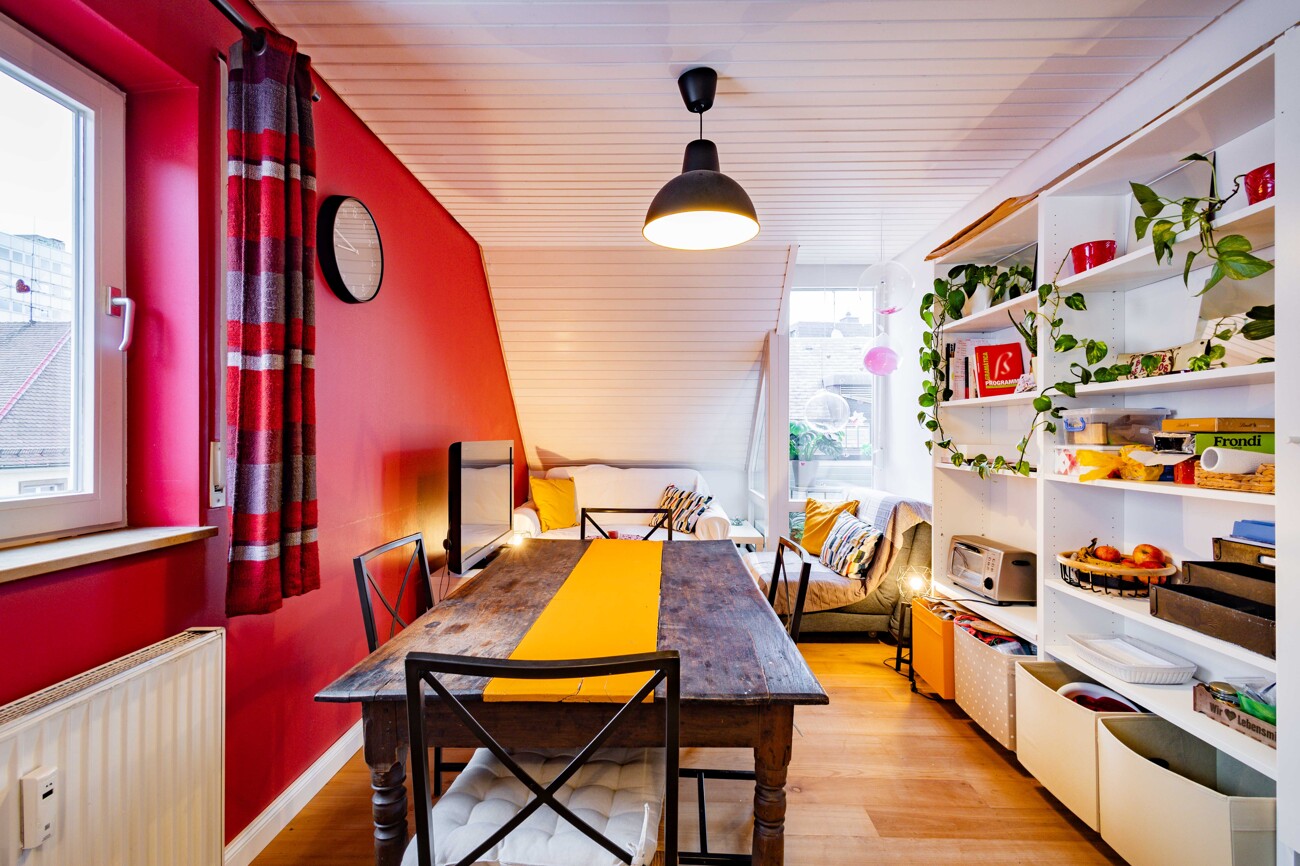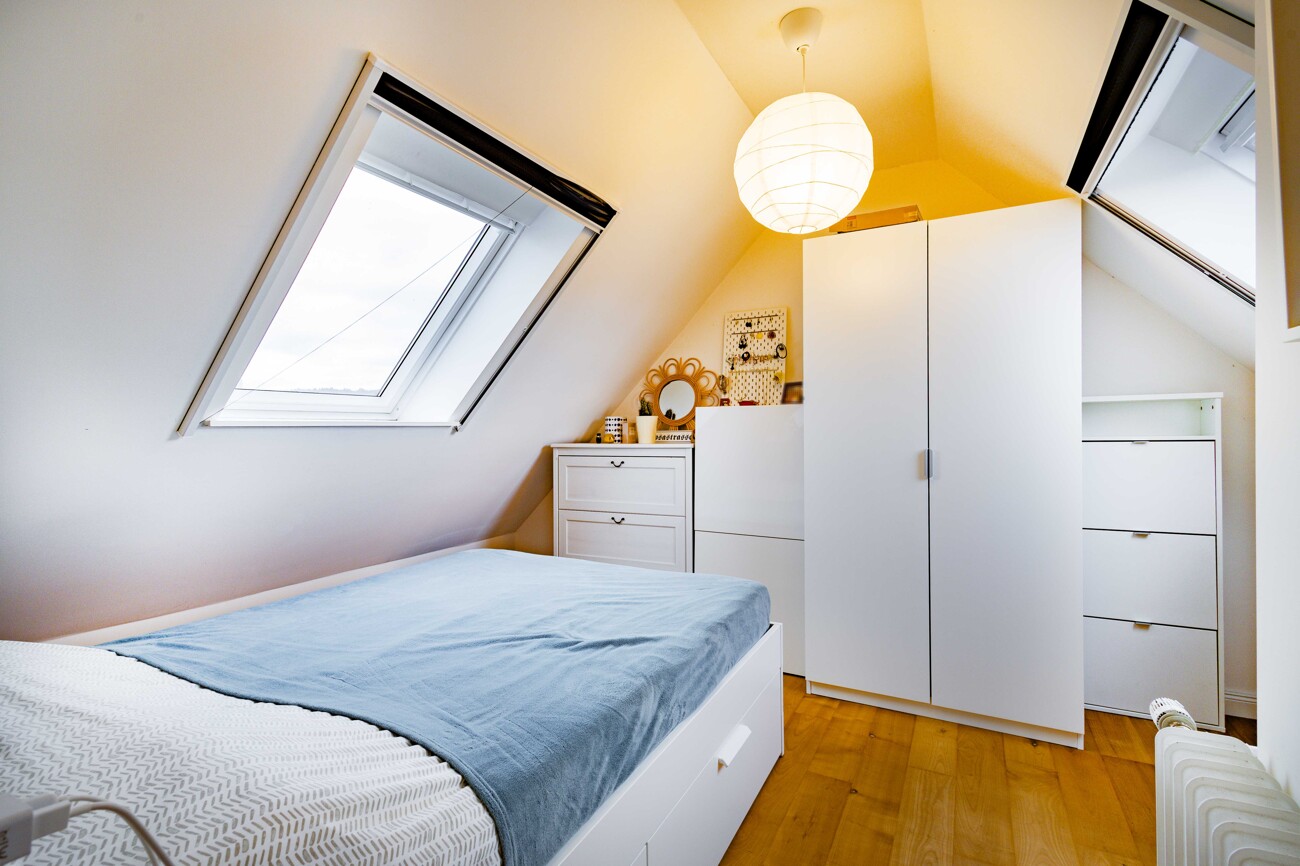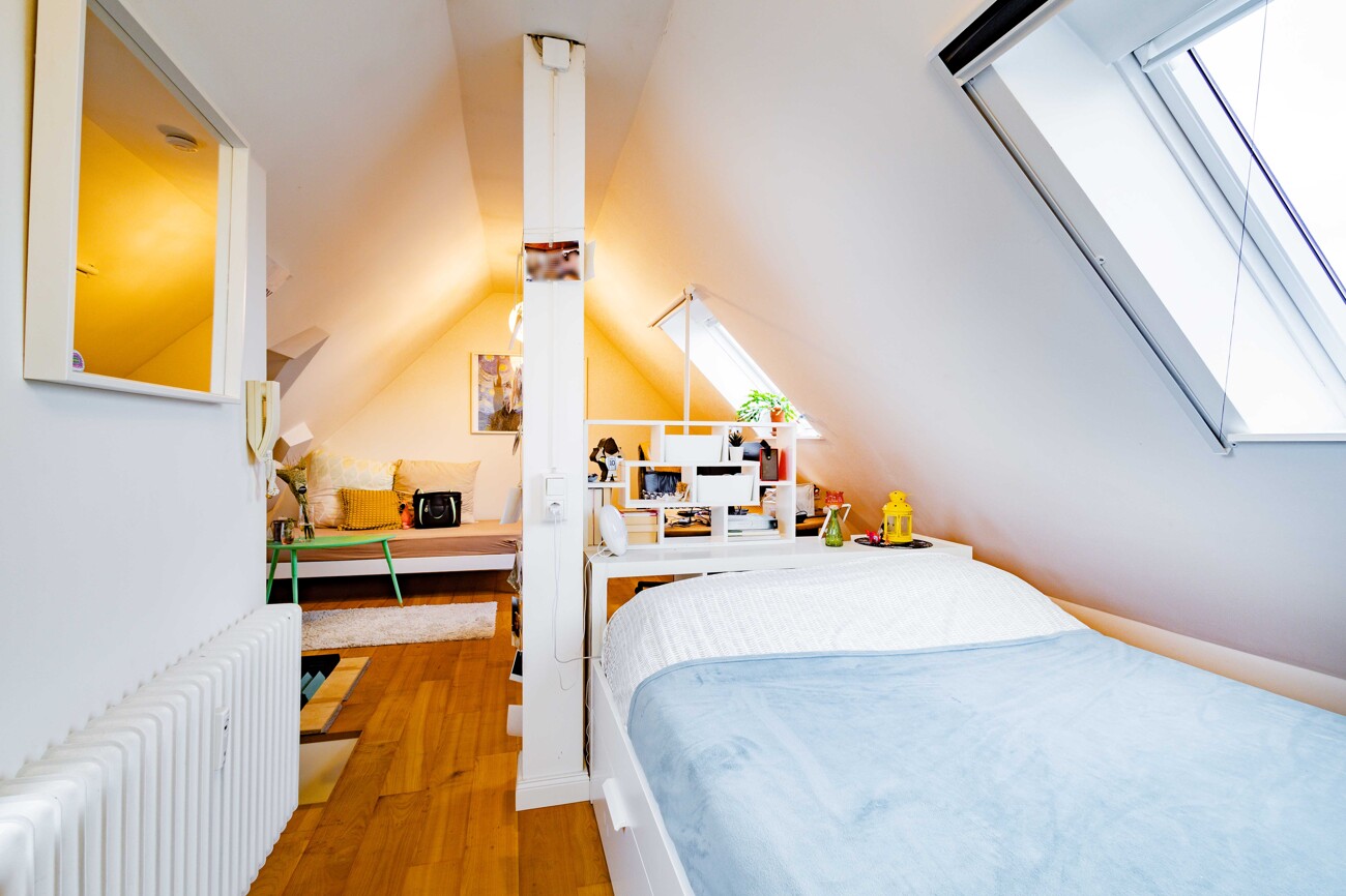 Die Besonderheit der Wohnung ist der ausgebaute Speicher. Hier finden Sie ein weiteres Zimmer mit Platz für ein Bett, einen Schreibtisch sowie weiteren Stauraum. Der Bereich ist beheizt und durch die Dachfenster gut belichtet.