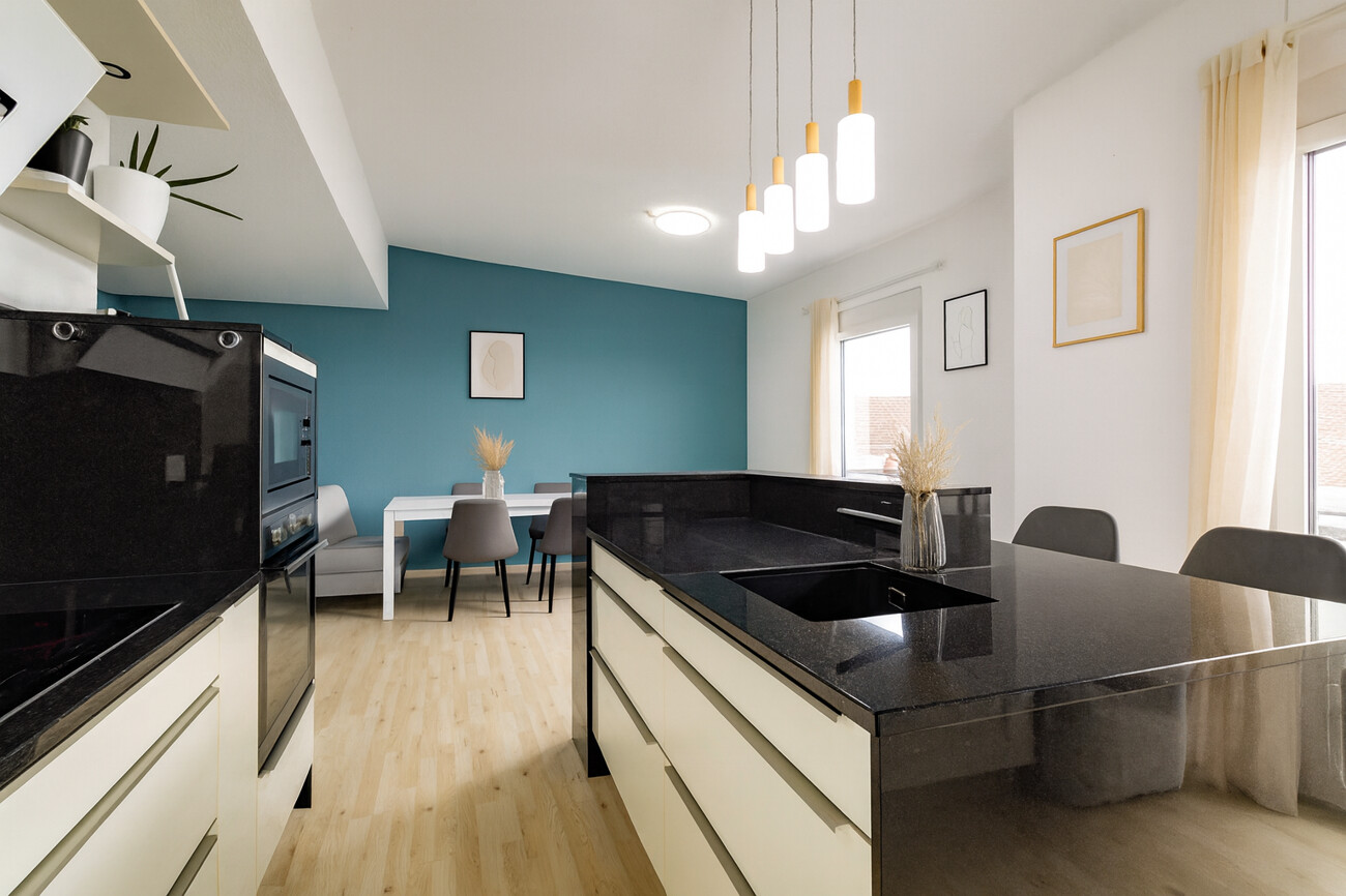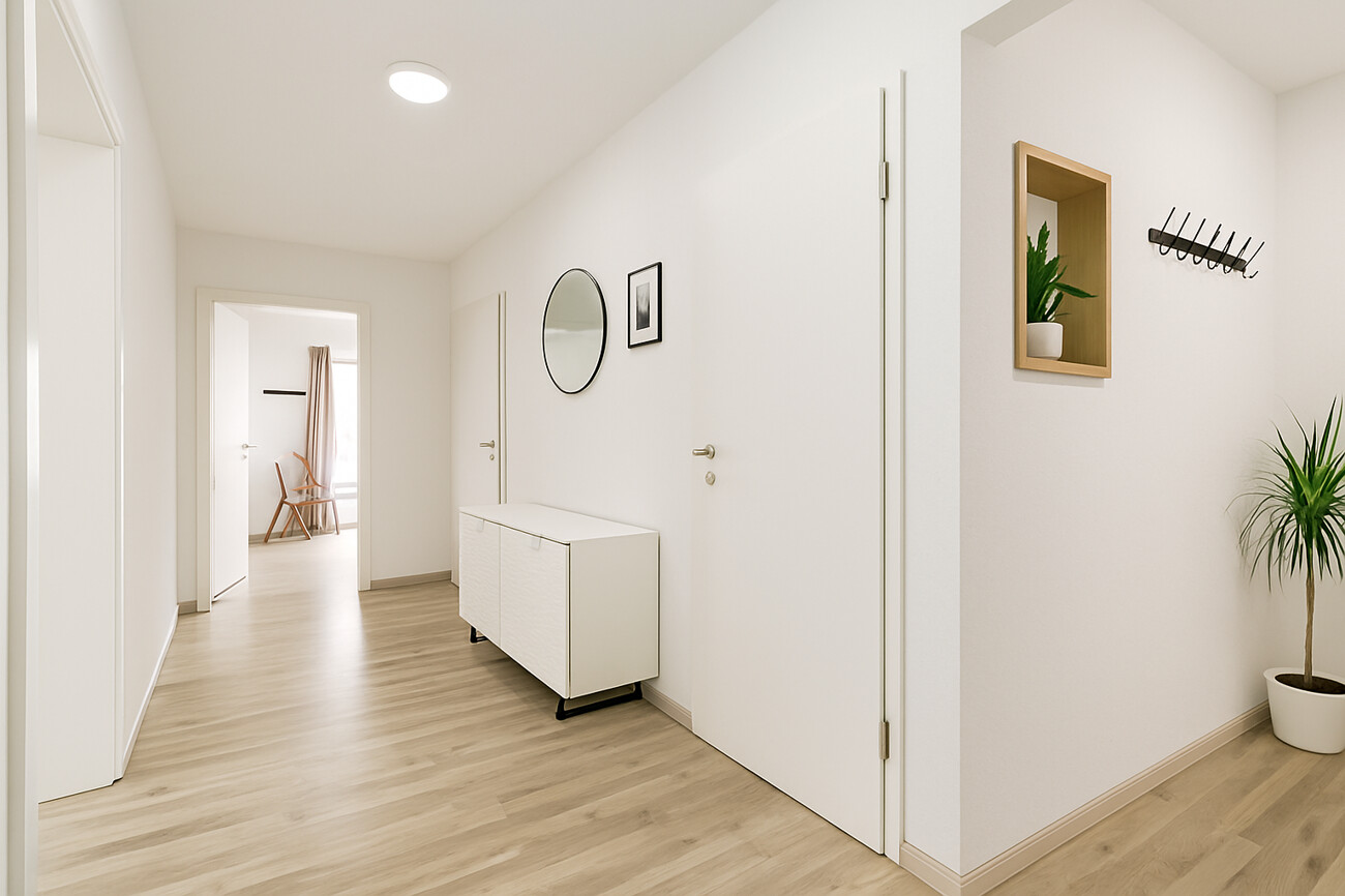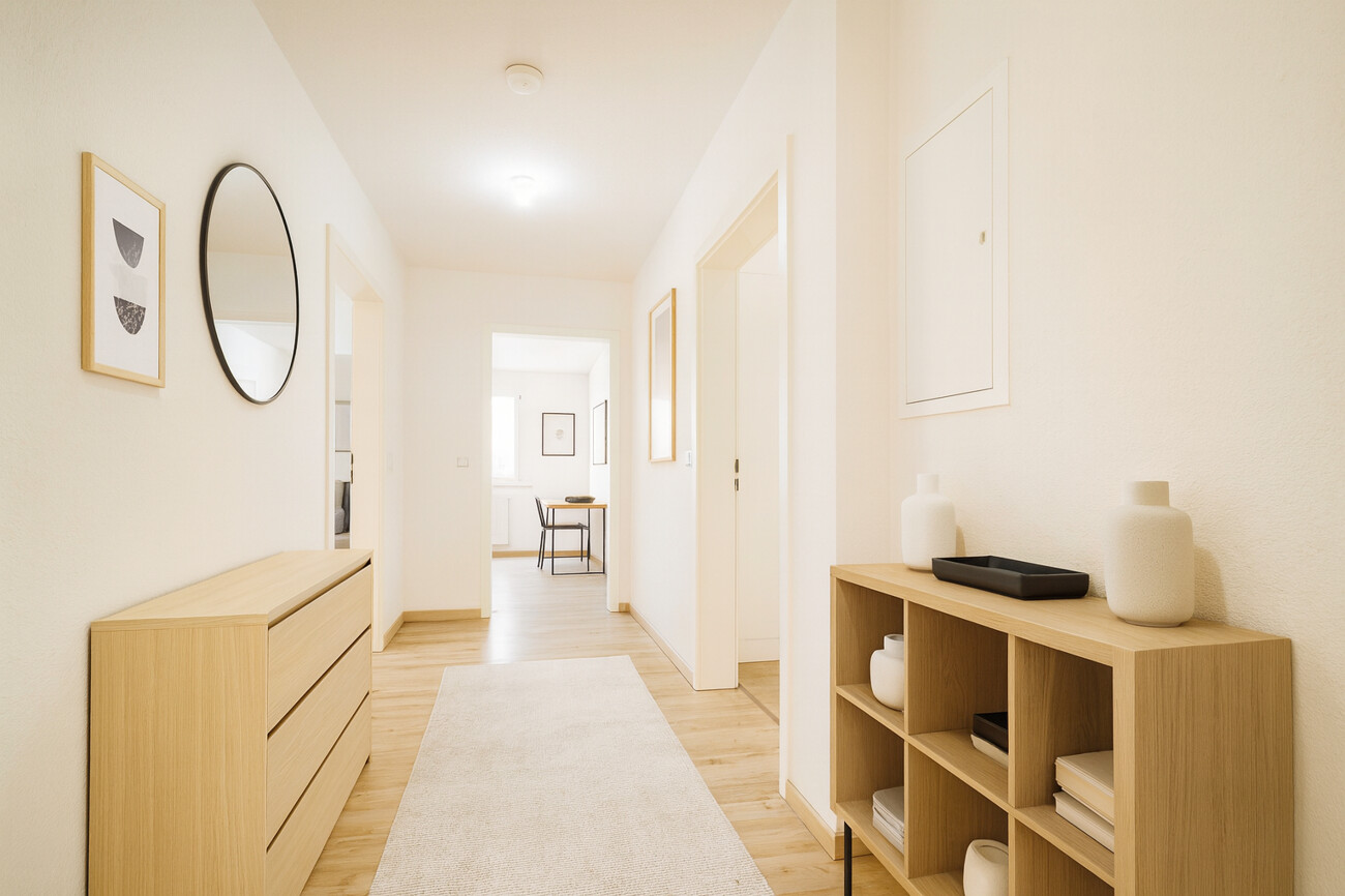 Bitte beachten Sie: Die in diesem Exposé verwendeten Fotos sind visualisiert und zeigen ein professionell gestagetes Einrichtungskonzept, um das volle Potenzial der Wohnung darzustellen.