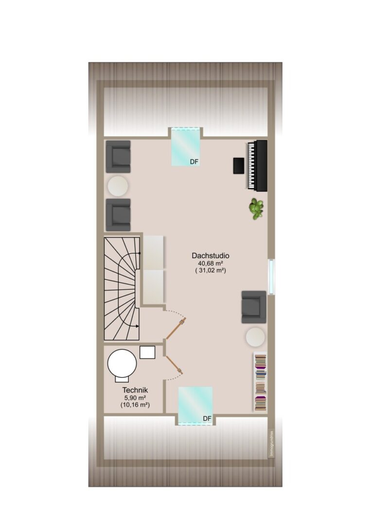 Ein Highlight des Hauses ist das großzügige Studio im Dachgeschoss mit rund 26 m². Ob als Hobby- oder Fitnessraum, Homeoffice oder Rückzugsort für die Kinder - hier eröffnen sich zahlreiche Möglichkeiten.