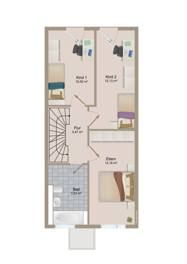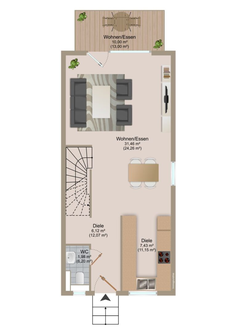 Die abgebildeten Räume sind teilweise digital eingerichtet und dienen der Inspiration. Die Immobilie wird leer übergeben.