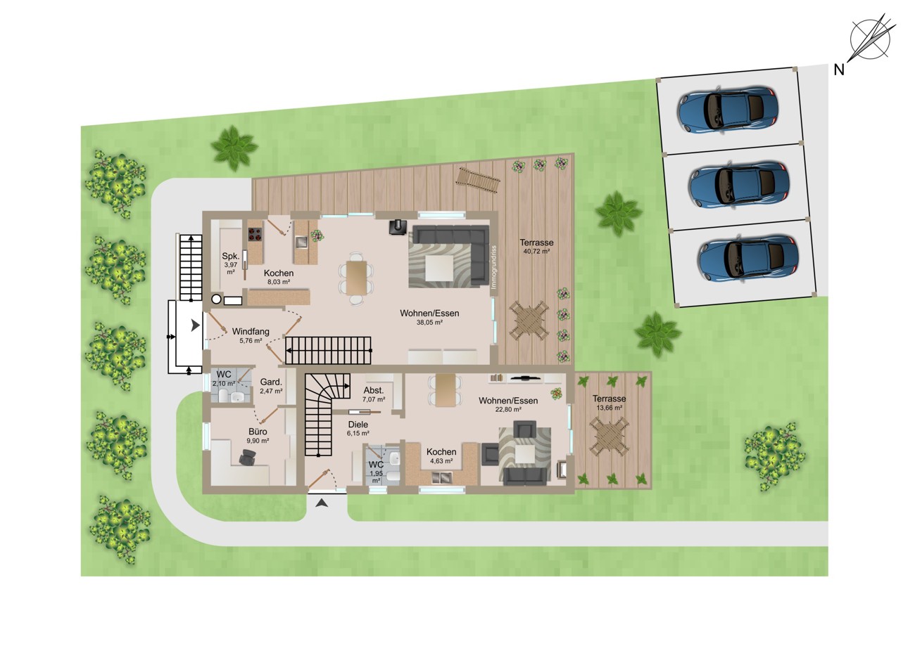 Optional ist auch die zweite Doppelhaushälfte mit einer Wohnfläche von 77m² auf Anfrage zu erwerben.