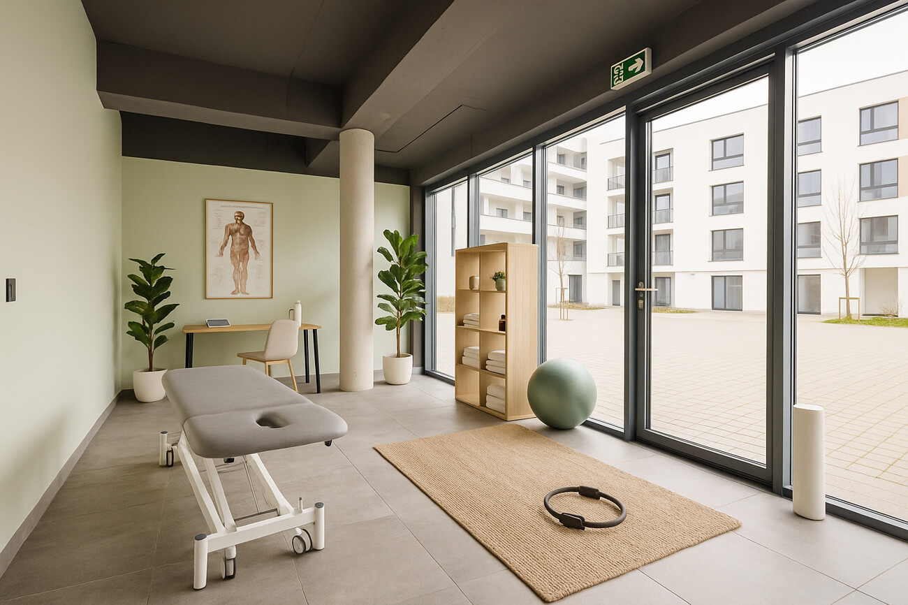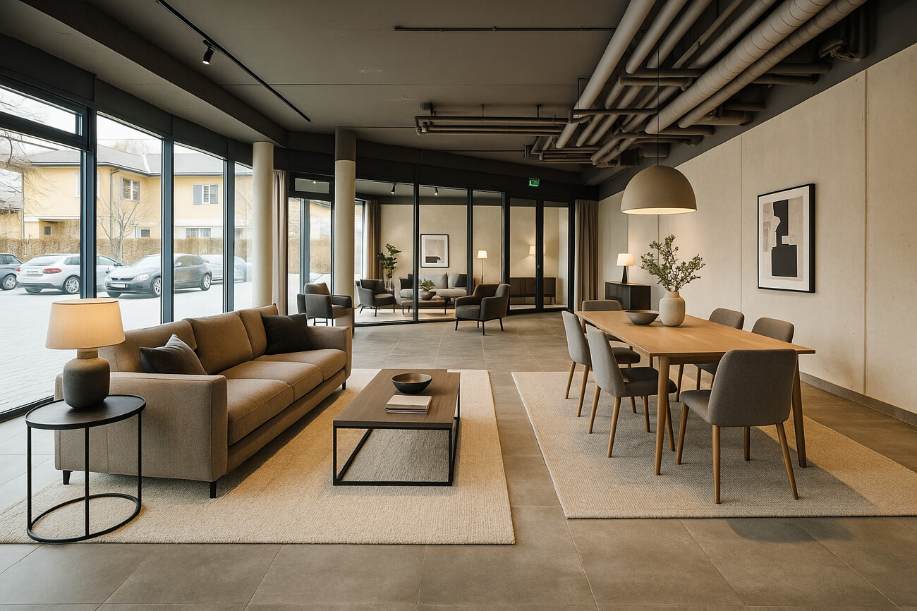Das im Jahr 2021 erbaute Gebäude besticht durch seine moderne Architektur und eine helle, freundliche Atmosphäre. Eine großzügige Fensterfront sorgt für eine optimale natürliche Belichtung und schafft ein einladendes Ambiente für Kunden und Mitarbeiter.
