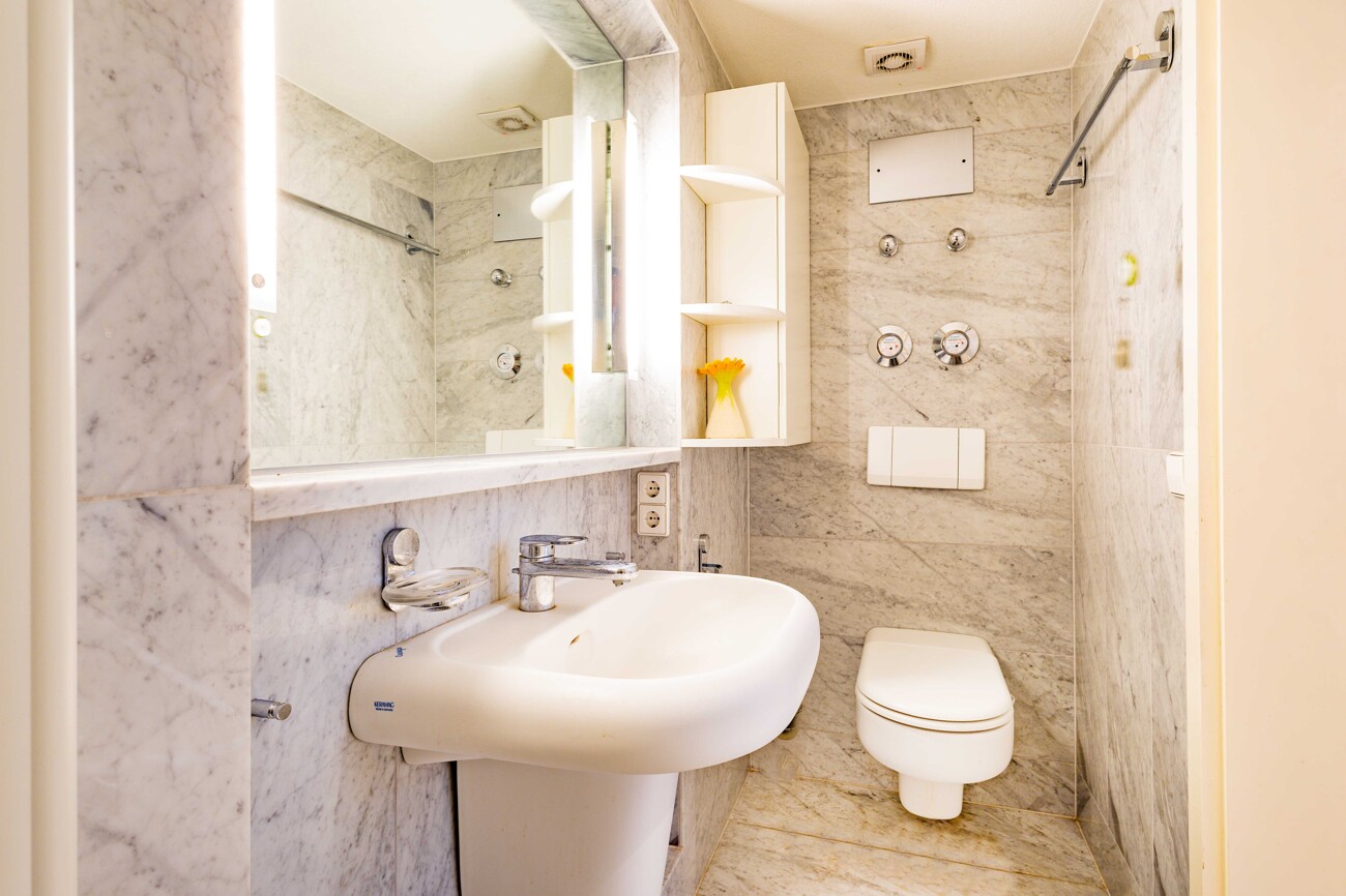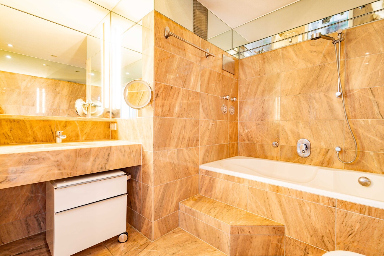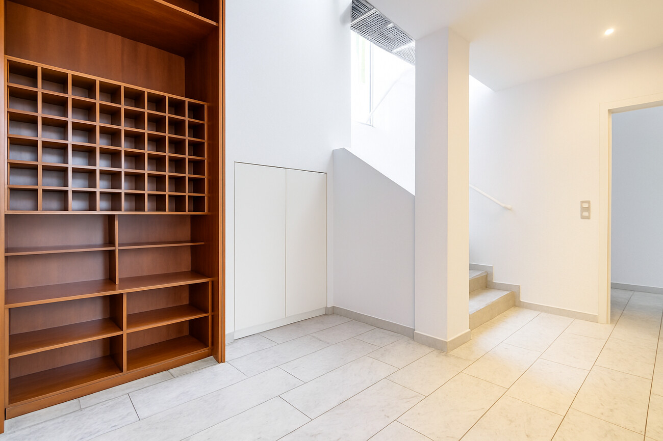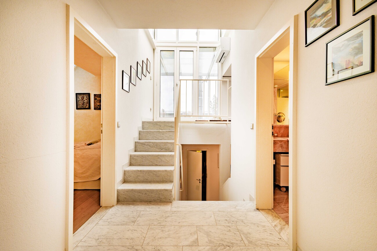 Die Wohnung ist bequem über einen Aufzug erreichbar. Zur Immobilie gehören außerdem drei private Garagenstellplätze: einer davon befindet sich separat von den anderen Stellplätzen direkt beim Zugang zu dem Mehrfamilienhaus, die beiden anderen, bestehend aus einem gesamten Duplexparker, befinden sich in der gemeinsamen Tiefgarage.