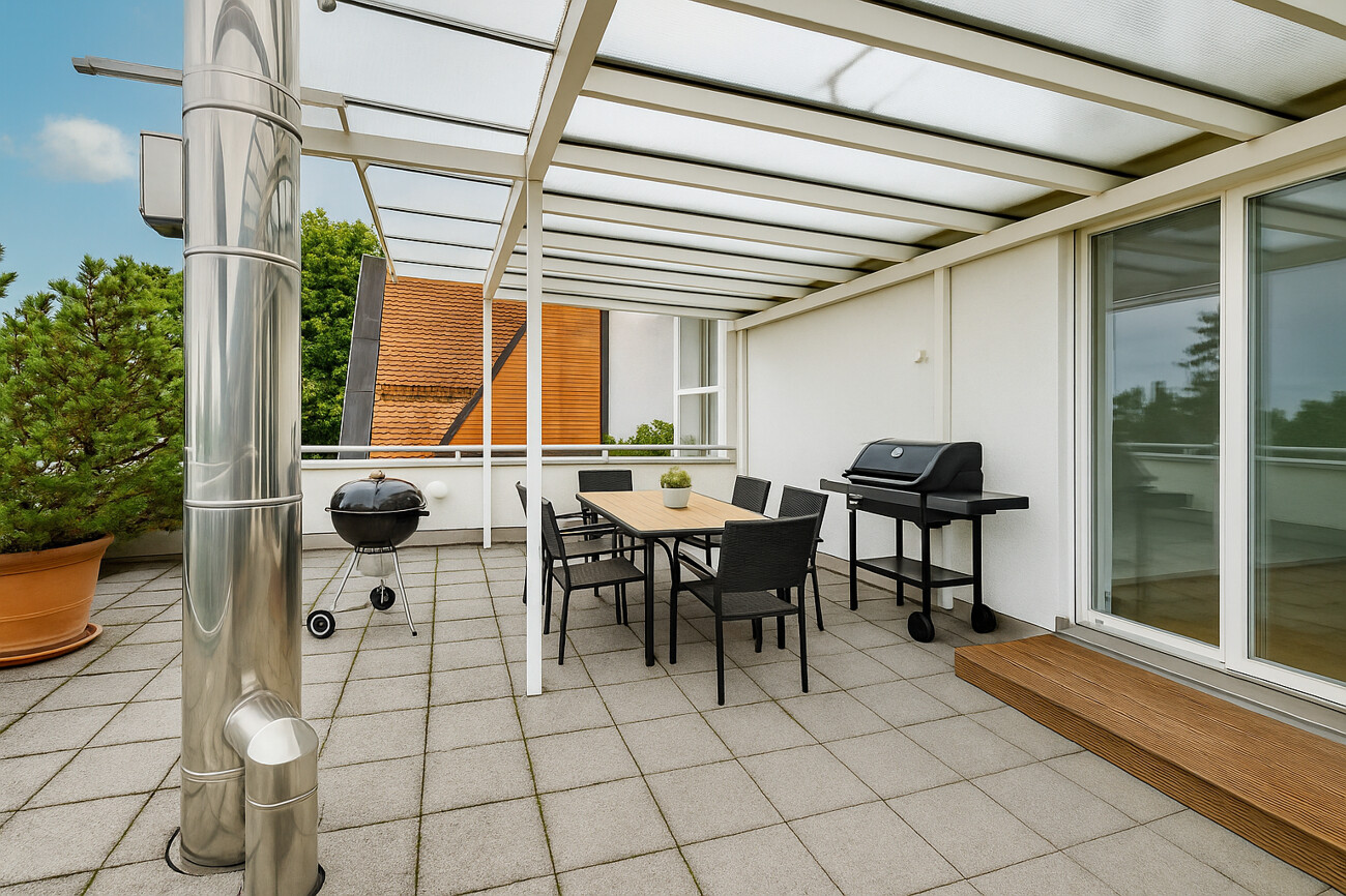 Diese großzügige 3-Zimmer-Maisonette-Wohnung mit rund 141 m² Wohnfläche erstreckt sich über zwei Etagen und bietet ein hochwertiges Zuhause mit viel Raum und einzigartiger Ausstattung. Das Herzstück der Wohnung sind die beiden Balkone sowie die einmalige Dachterrasse. Der atemberaubende Blick auf den grünen Stadtteil Herdern, den Sonnenuntergang über den Dächern sowie der weite Ausblick bis zum Kaiserstuhl und den Vogesen bieten ein unverwechselbares Wohnerlebnis.