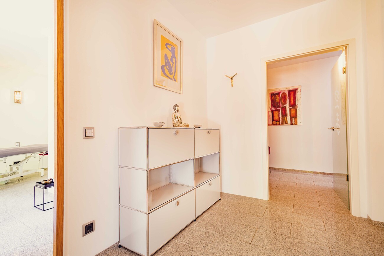 Angrenzend befindet sich der Flur, durch welchen Sie das Haus betreten. Bereits hier wird deutlich, wie durchdacht die Aufteilung der Immobilie konzipiert wurde. Der Technikraum mit Waschmaschinenanschluss und WC als auch der Eingangsbereich selbst bieten sehr gute Stauraumlösungen. Darüber hinaus sorgt eine verlängerte Garage für weitere Abstellmöglichkeiten: So finden hier das Holzlager für den Kamin, Fahrräder, Fahrzeuge und Gerätschaften ausreichend Platz. Weiterhin steht auch ein separater Mehrzweck- oder Sportraum zur Verfügung (Nutzfläche).